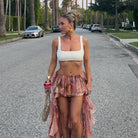 Embrace effortless elegance with the Alessia Floral Ruffled Skirt, a perfect blend of femininity and modern style. Featuring a cascading ruffle design and an eye-catching floral print, this skirt adds movement and charm to any outfit. Whether for a casual day out or a stylish evening look, it’s a must-have for those who love statement pieces.