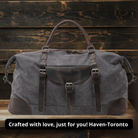 Introducing the Knoxville overnight bag – a stylish and ergonomic leather and canvas weekender perfect for men and women. Made from full-grain leather and durable cotton canvas, this versatile bag is built to last. Its minimalist design complements any outfit, and external flap and zippered pockets offer easy access to your essentials.