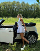 Effortlessly stylish and endlessly versatile, the Leah Ribbed Mini Dress is the perfect blend of sporty and sophisticated. Designed with a figure-hugging ribbed bodice and a pleated mini skirt, this dress flatters your silhouette while adding movement and structure. Whether dressed up with heels or styled casually with trainers, it’s a must-have staple for any wardrobe.