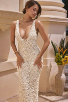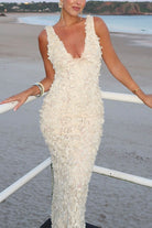 - Elegant Plunge Neckline: A deep, flattering neckline enhances the dress's sophisticated appeal.