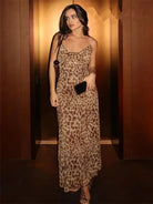 The Perla Midi Dress exudes effortless elegance with its sleek leopard print and flattering silhouette perfect for summer parties or casual outings.