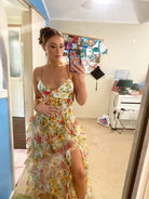 ROSABELLA Dress a blooming vision of romance and movement. This floral dream features delicate ruffled tiers that fall in perfect symmetry, capturing the essence of a soft breeze on a summer day. The bodice hugs the figure with graceful femininity, opening into a fluttering silhouette that turns every step into a statement.
