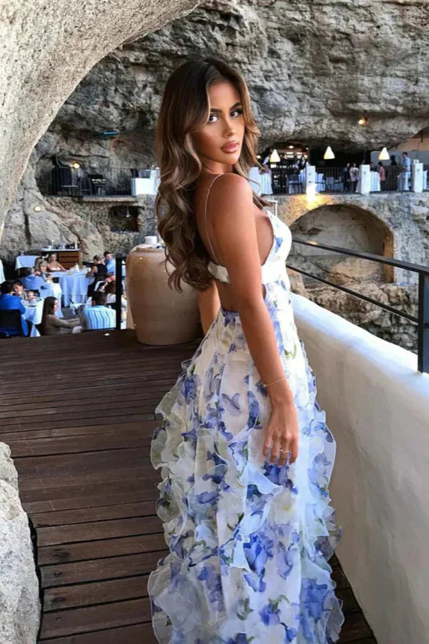 Step into a dreamscape with the Tamarind Petal Cascade Gown—where movement meets bloom. Designed with layered ruffles that ripple like petals in the breeze, this gown captures the spirit of celebration with a soft floral palette, sweeping silhouette, and an open-back flourish. Ideal for garden ceremonies, sunlit soirées, or any moment worth remembering.